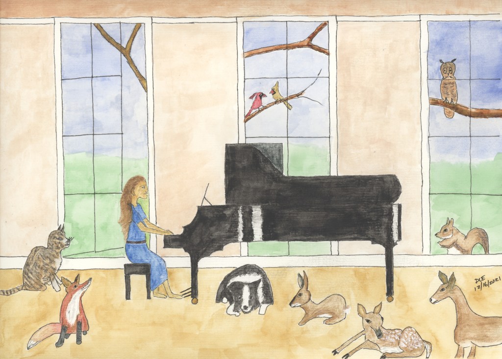 Girl, Animal Friends and a Piano